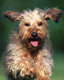 Светло-рыжая собака, на груди, мордахе, низе живота и лапах бежевыми пробелами. Глаза цвета утреннего неба, челка рыжая, на одной пряди неумело разукрашенна розовой краской (ну все же иногда суются в банки с краской xD)